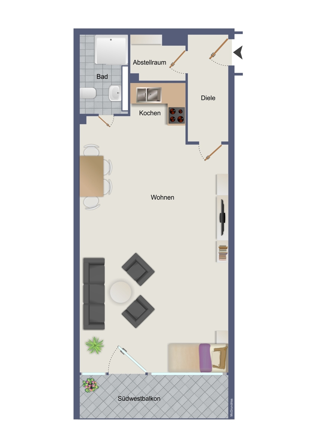 Hochwertiger Designboden in Holzoptik, frisch gestrichene Wände, sowie ein zusätzlicher Abstellraum sorgen für modernen Wohnkomfort.