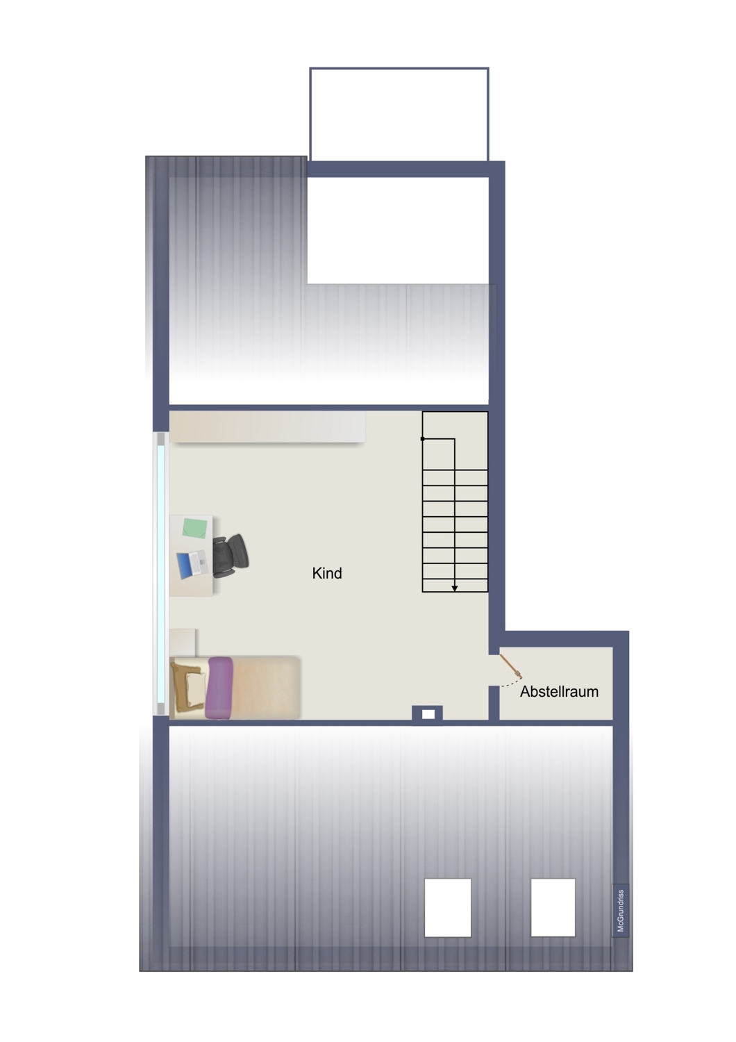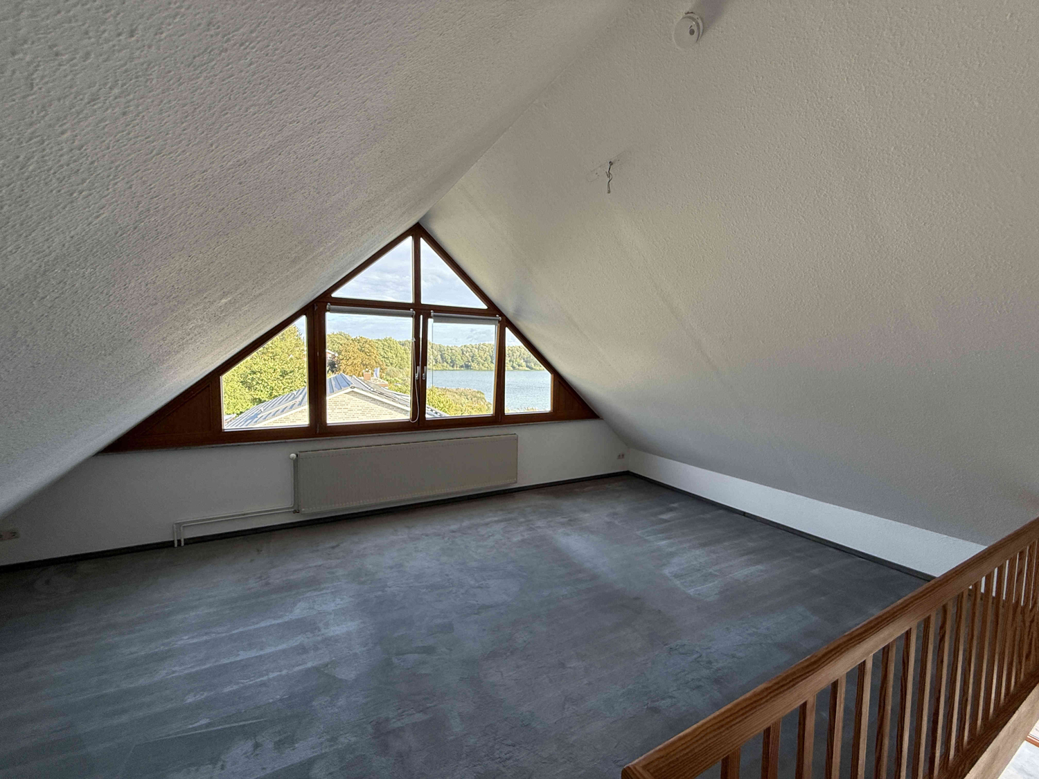 Im Dachgeschoss erwartet Sie ein großzügiges Schlafzimmer mit einer beeindruckenden Fensterfront und ebenfalls traumhaftem Seeblick. Die offene Raumgestaltung und die Helligkeit verleihen diesem Bereich eine ganz besondere Wohnqualität.