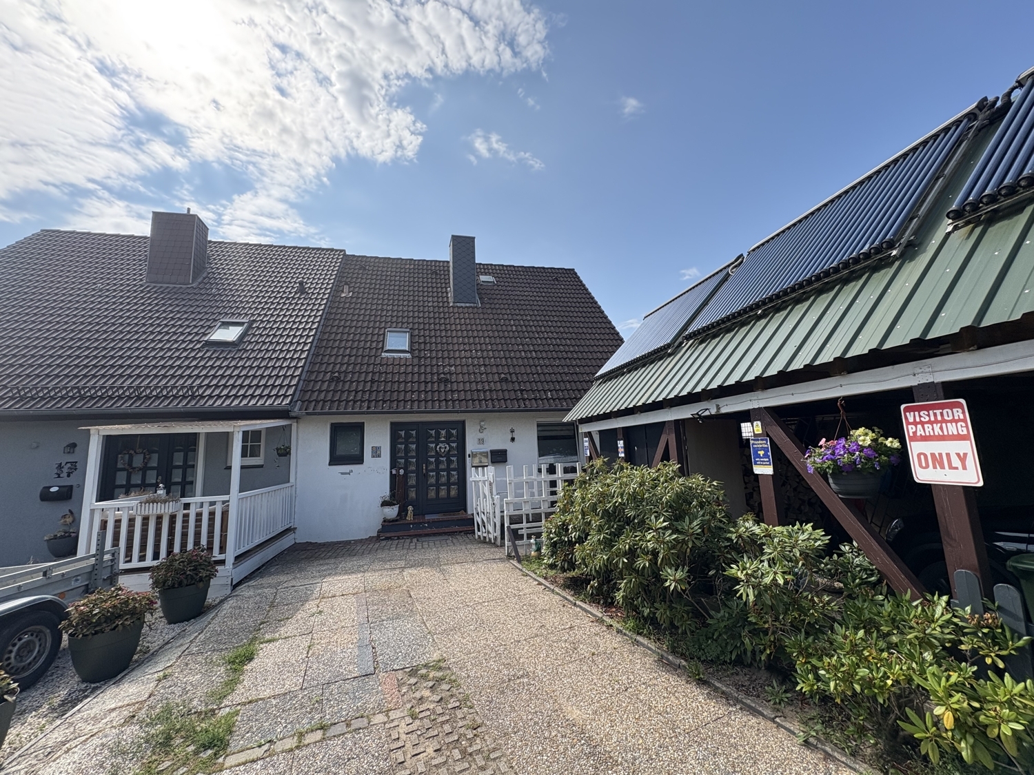Für behagliche Wärme sorgen die Öl-Heizung und ein wasserführender Kaminofen, unterstützt durch eine Solarthermieanlage zur Warmwasseraufbereitung. Die Doppelhaushälfte verfügt über einen DSL-Anschluss.