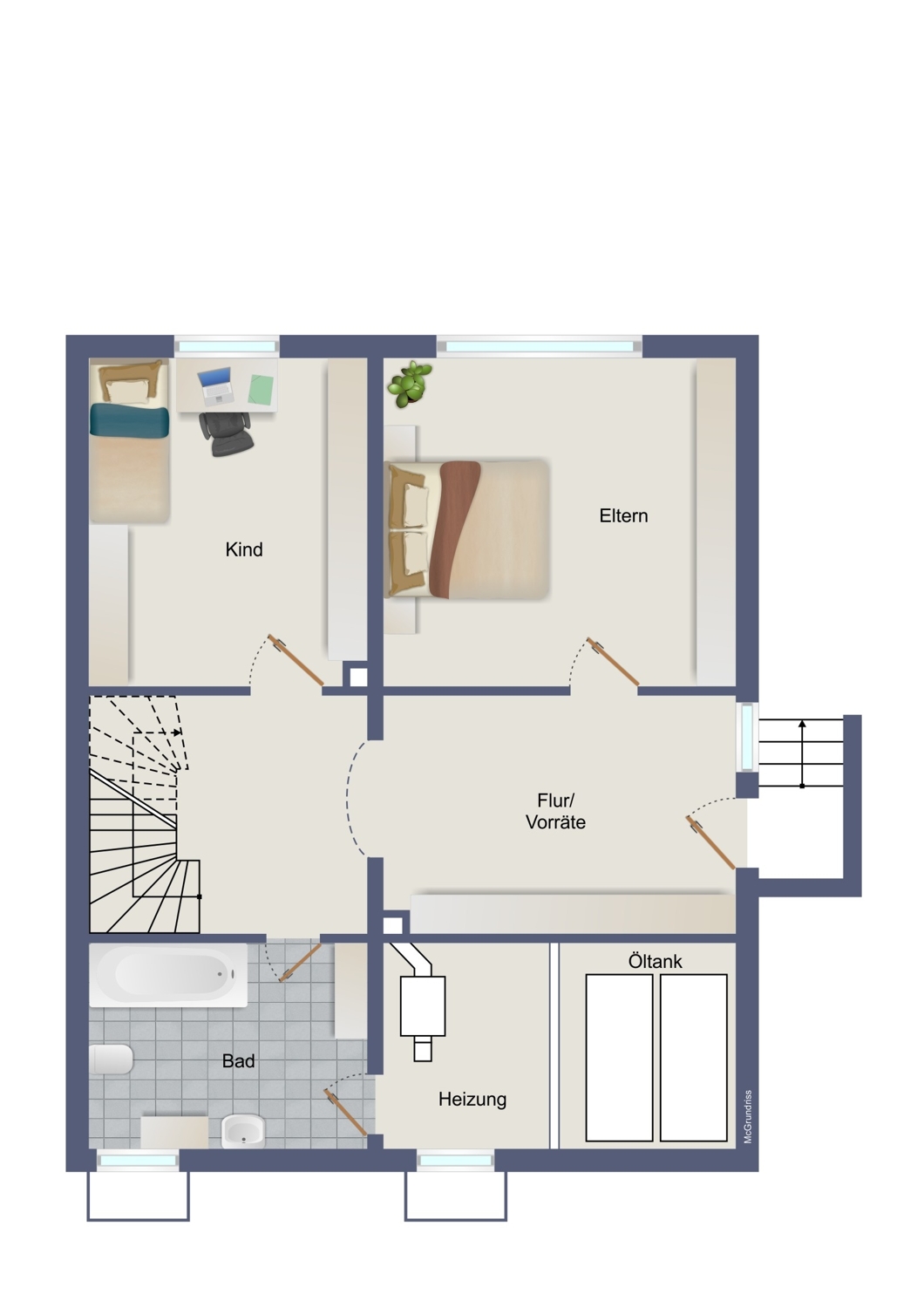 Eine gute Möglichkeit bietet die separat zugängliche Einliegerwohnung im Souterrain mit ca. 52 m², die derzeit für 520,- € kalt im Monat vermietet ist.