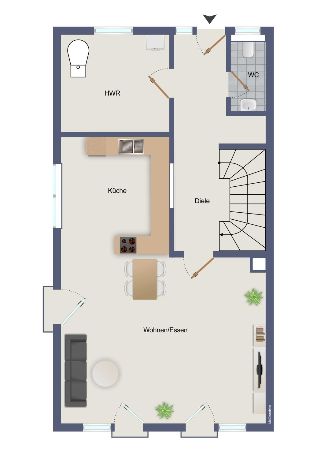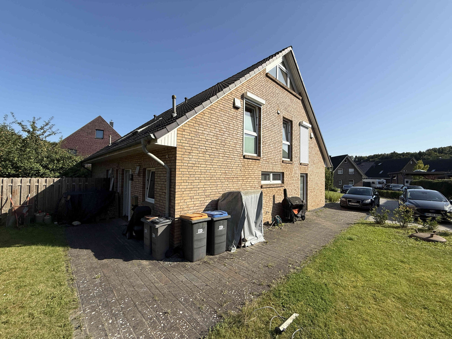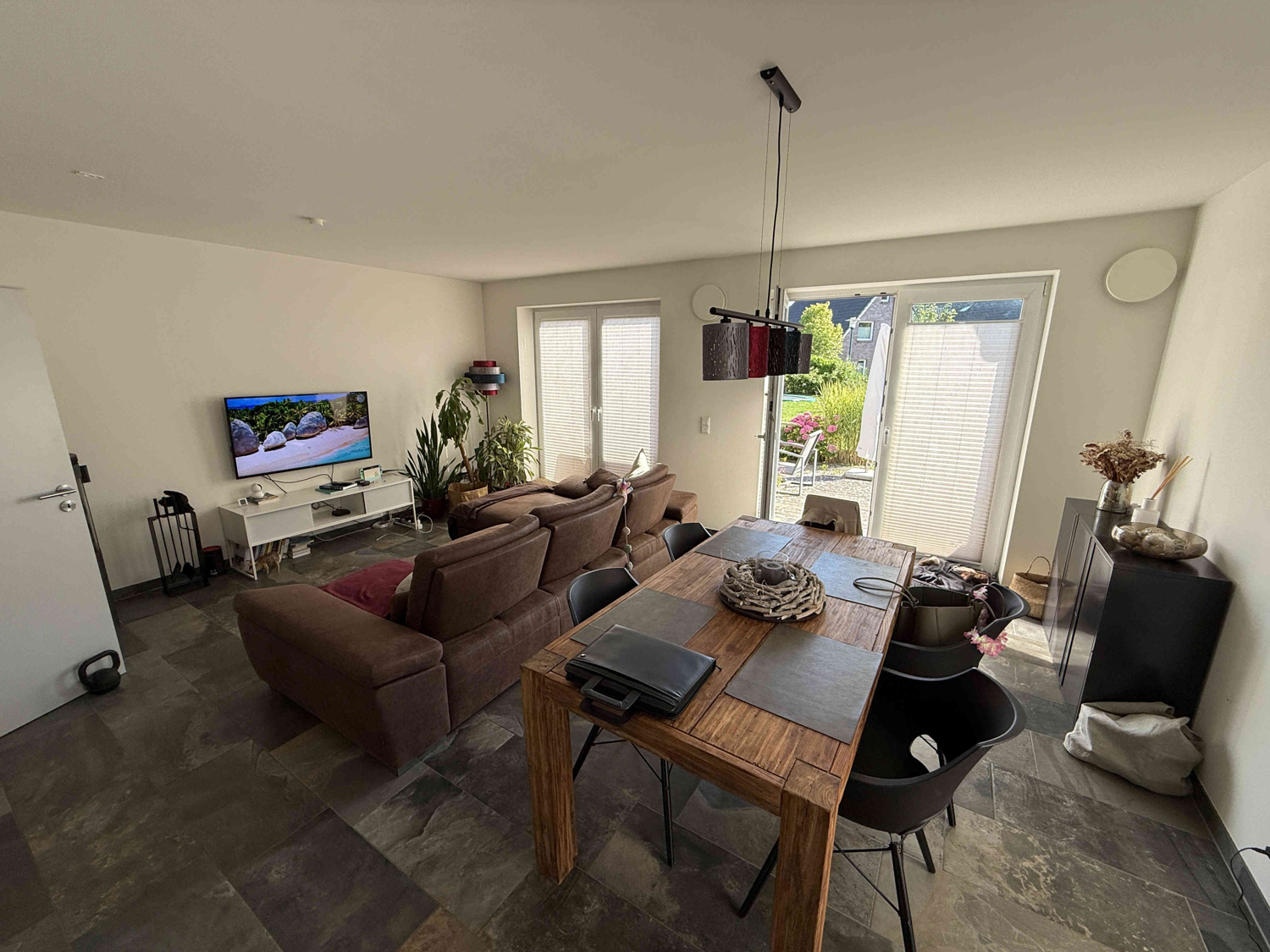 Diese ansprechende Doppelhaushälfte aus dem Jahr 2012 überzeugt durch ihre moderne Bauweise, energieeffiziente Ausstattung und eine durchdachte Raumaufteilung. Mit ihrem KfW-55-Standard, einer Lüftungsanlage mit Wärmerückgewinnung sowie Solarthermie zur Warmwasserbereitung bietet das Haus nicht nur zeitgemäßen Wohnkomfort, sondern auch nachhaltige Energienutzung und niedrige Betriebskosten.Im Erdgeschoss empfängt Sie ein großzügiger Flur, von dem aus alle Räume zugänglich sind. Hier befinden sich ein Hauswirtschaftsraum, ein Gäste-WC sowie das Herzstück des Hauses, der offen gestaltete Wohn- und Essbereich mit gemütlichem Kamin und offener Küche. Große Fensterflächen sorgen für viel Tageslicht und schaffen eine angenehme Wohnatmosphäre. Vom Wohnbereich aus gelangen Sie direkt auf die schöne Terrasse, die zum Entspannen und Verweilen einlädt, sowie in den gepflegten Garten, der ausreichend Platz für Freizeit, Spiel und Erholung bietet.