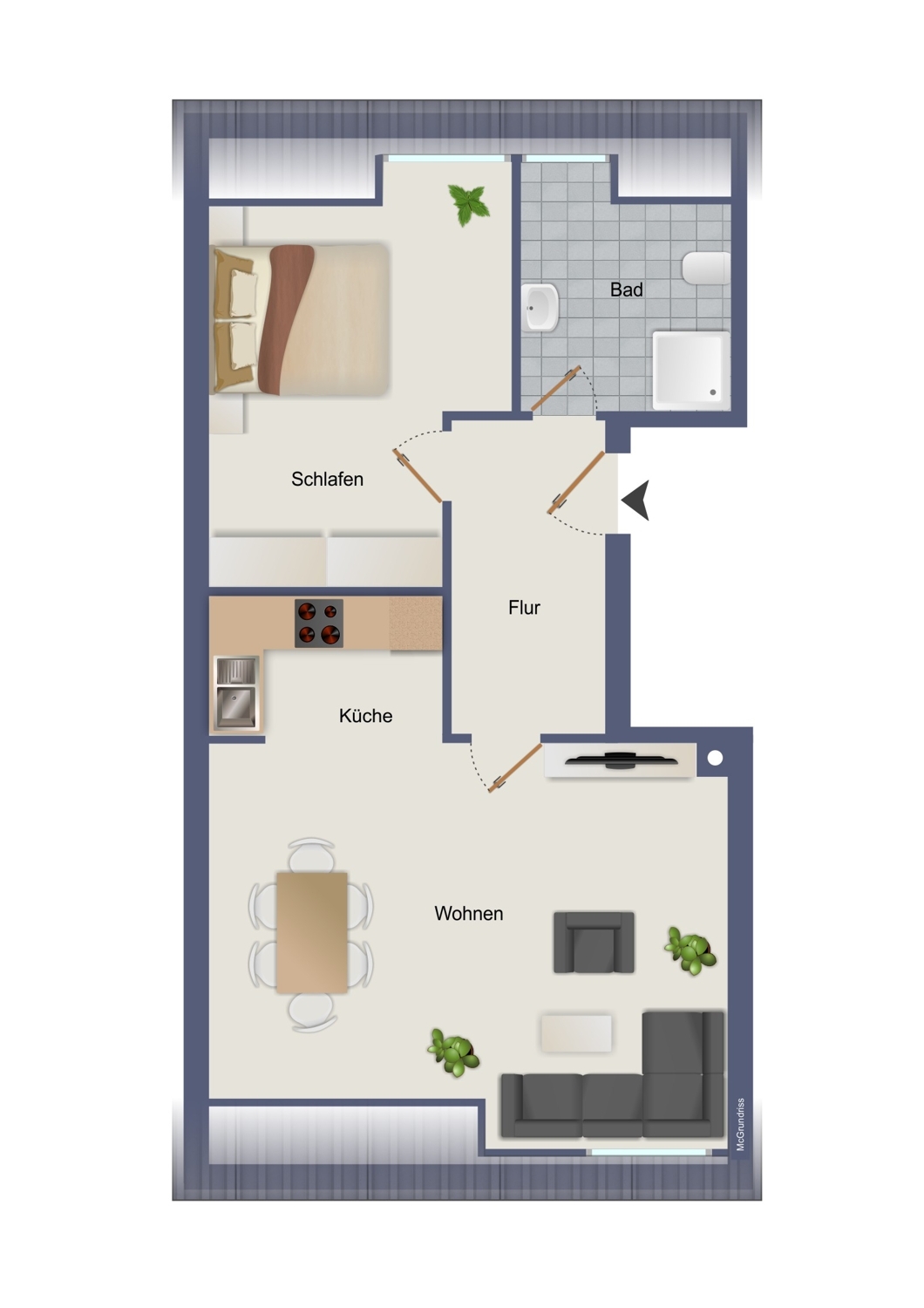 - Heller Wohnbereich mit pflegeleichtem Laminatboden- Geflieste Pantryküche, funktional und praktisch