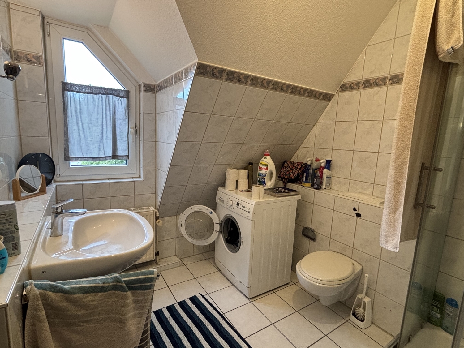 - Modernes, gefliestes Duschbad mit Waschmaschinenanschluss