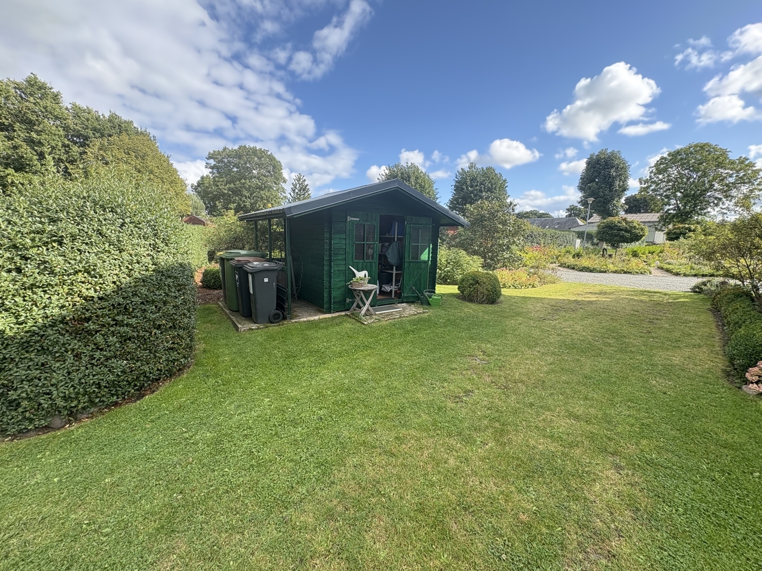 Das gepflegte Grundstück mit ca. 1.062 m² bietet vielfältige Nutzungsmöglichkeiten - vom Spielbereich für Kinder über die Gartenfläche für Hobbygärtner bis hin zum Rückzugsort im Grünen. Die Rasenpflege übernimmt ein Rasenmäher-Roboter, sodass Sie Ihre Freizeit unbeschwert genießen können.