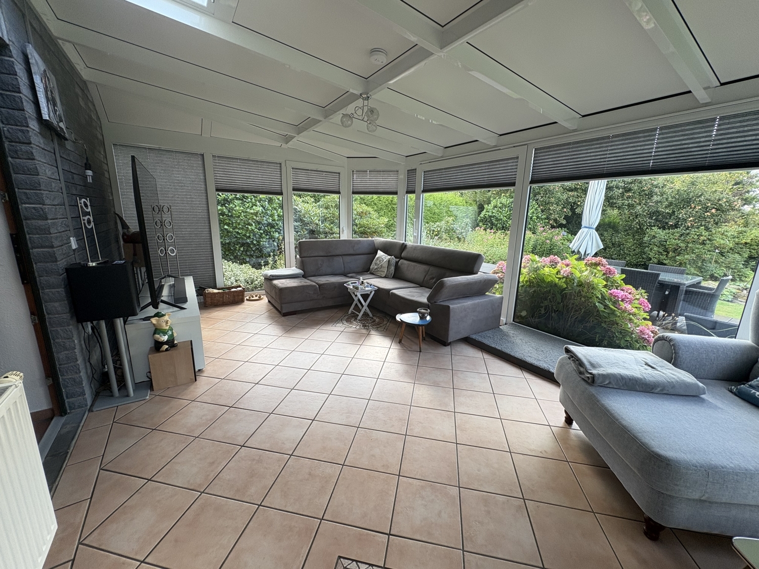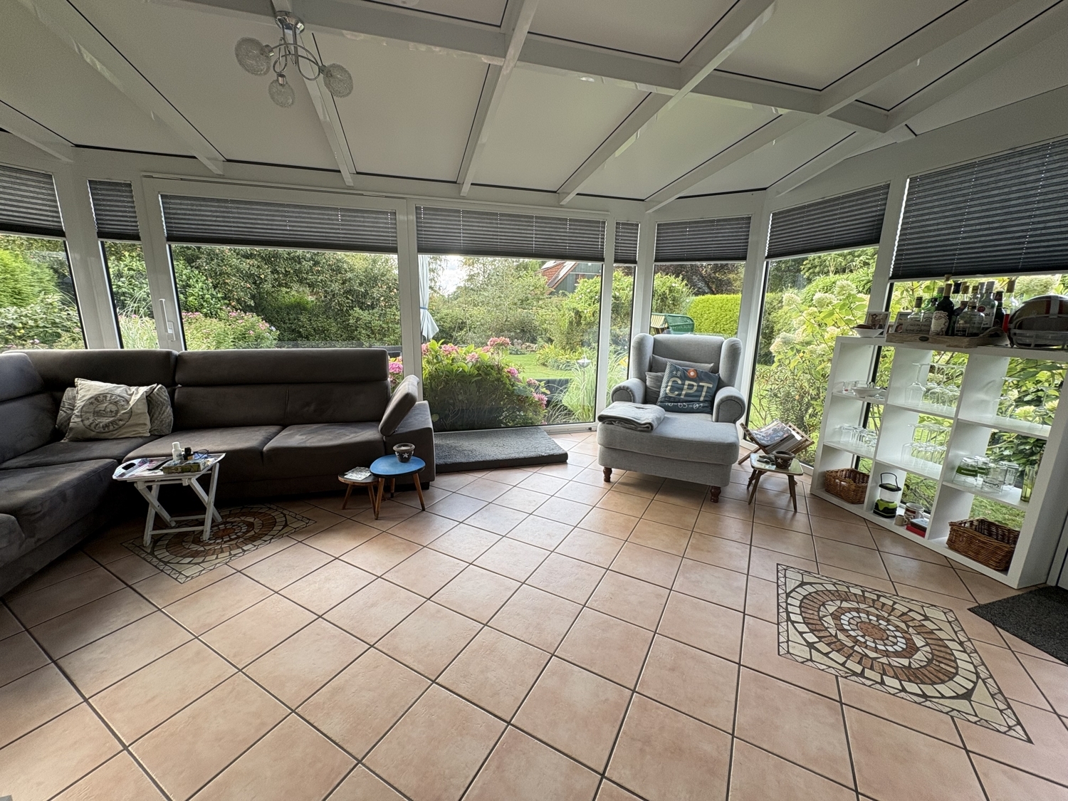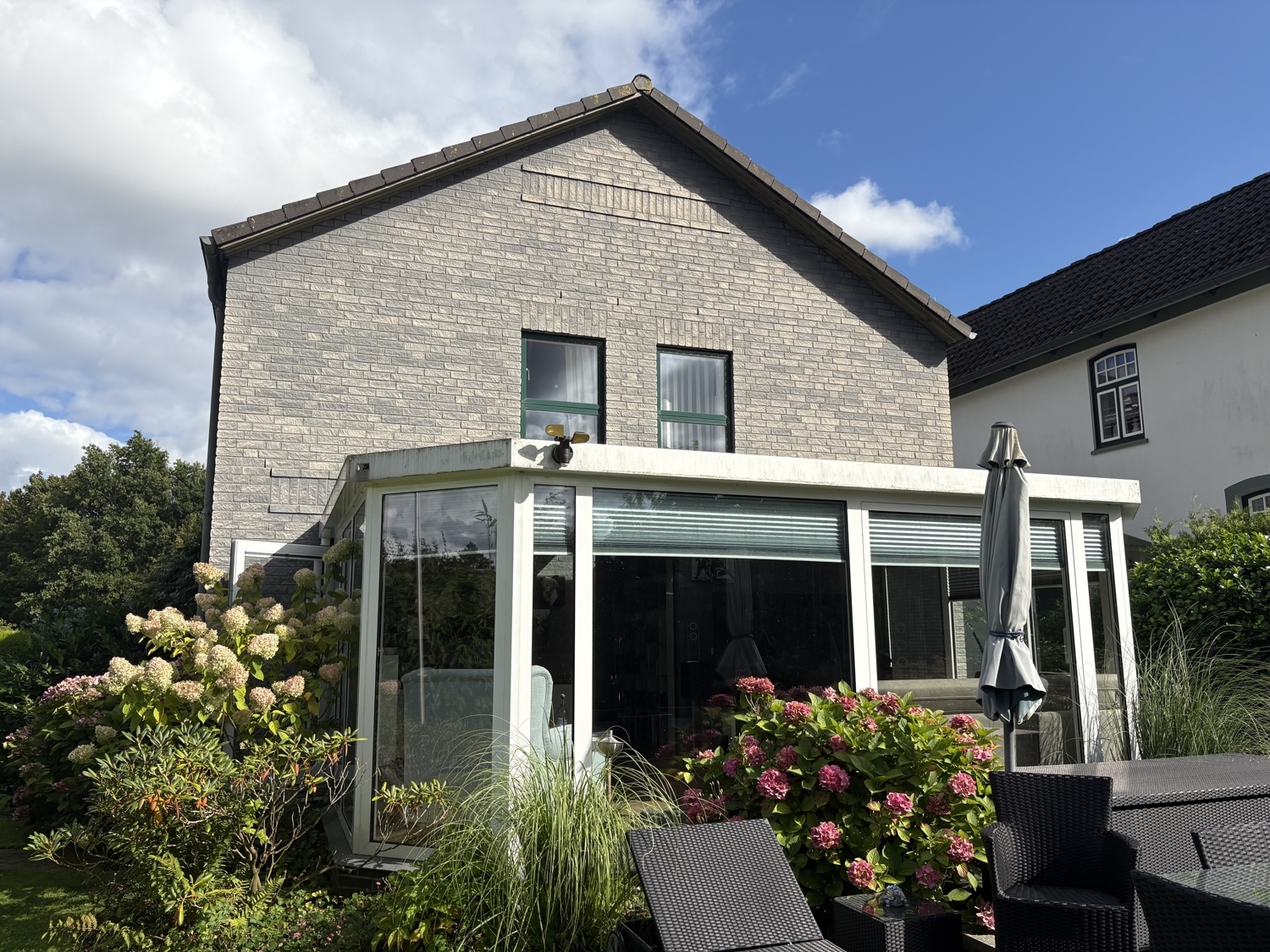 Ein besonderes Highlight ist der lichtdurchflutete Kaben - Wintergarten mit edlem Kupferdach. Von hier aus gelangen Sie direkt auf die Terrasse und in den liebevoll angelegten Garten.