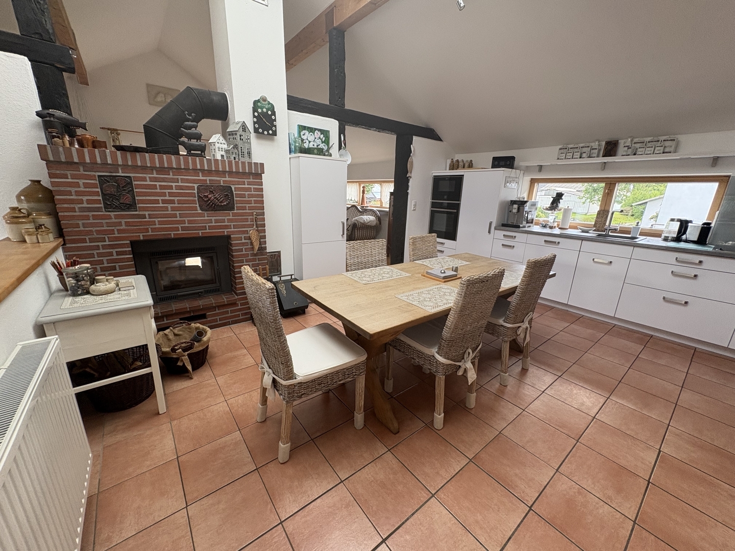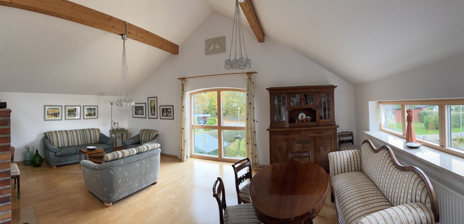 Dieses im Jahr 2001 erbaute Einfamilienhaus überzeugt mit großzügigen ca. 196 m² Wohnfläche, verteilt auf zwei Etagen. Mit insgesamt fünf Zimmern bietet es ausreichend Platz für Familien und Paare.Das Herzstück des Hauses ist der offen gestaltete Wohn- und Essbereich. Die Einbauküche ist mit allen Annehmlichkeiten ausgestattet: Geschirrspüler, Kühlschrank, ein Herd mit Ceran- und Gaskochfeld, ein Backofen und Mikrowelle in komfortabler Arbeitshöhe. Ein integriertes Oberlicht sorgt zusätzlich für angenehmes Tageslicht und unterstreicht das offene Raumgefühl. Ein moderner Kamin sorgt an kühleren Tagen für wohlige Wärme und erfüllt alle aktuellen Anforderungen.